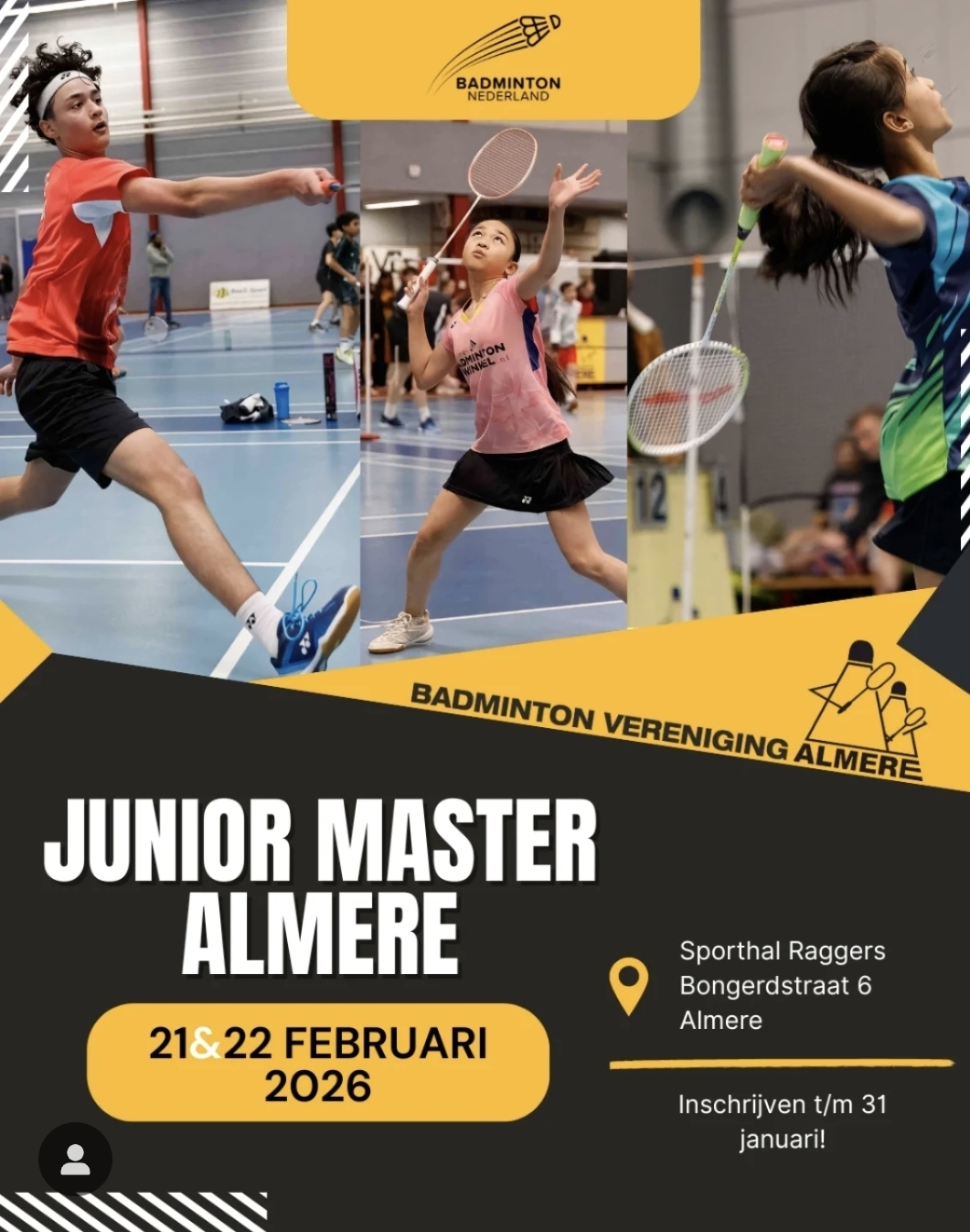 Junior Master Almere 2026: topjeugd in actie Het Junior Master Almere 2026 is een nationaal badmintontoernooi waar de absolute topjeugd van Nederland samenkomt. Dit prestigieuze toernooi is onderdeel van het Junior Master Circuit van Badminton Nederland en staat bekend om het hoge niveau en de sportieve beleving. Strijd in meerdere leeftijdscategorieën Jeugdspelers tot en met […]