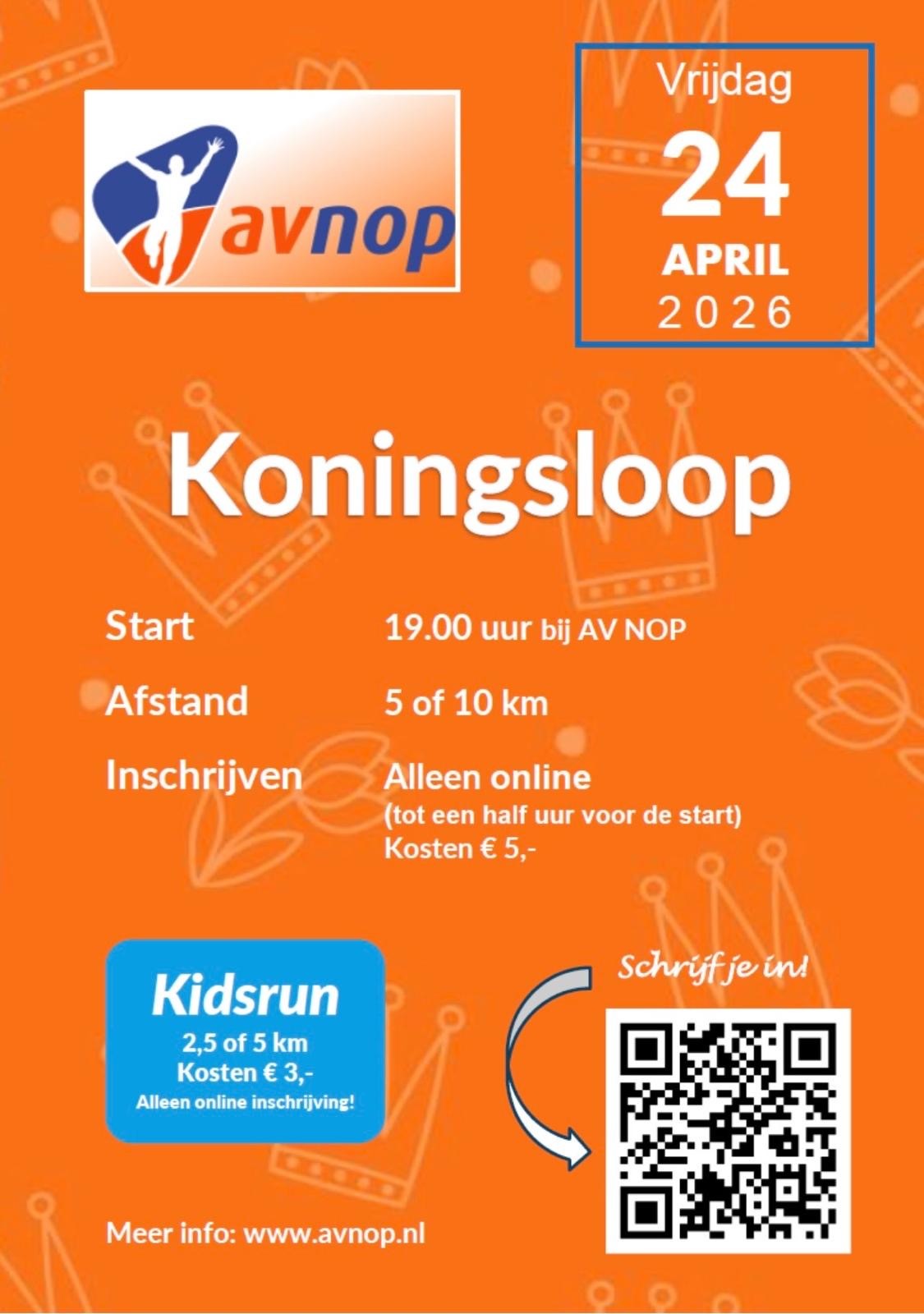 De Koningsloop is een gezellige en laagdrempelige hardloopwedstrijd voor jong en oud, die plaatsvindt op vrijdagavond 24 april 2026 bij AV NOP in Emmeloord. Om 19.00 uur klinkt het startschot en trekken deelnemers het prachtige Emmelerbos in voor een sportieve en sfeervolle loop. Of je nu een beginnende loper bent of juist komt voor een […]